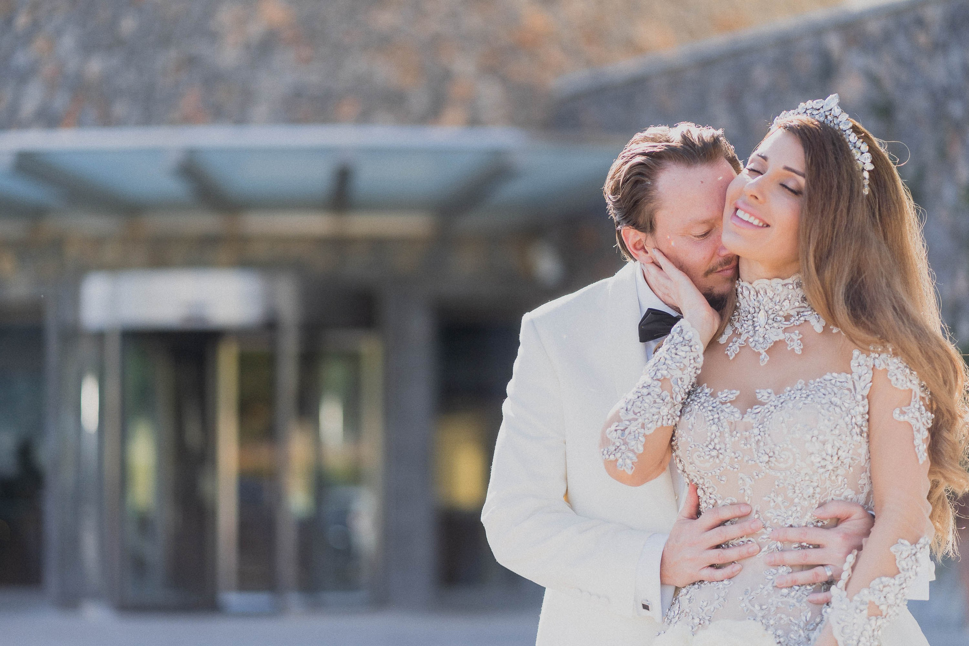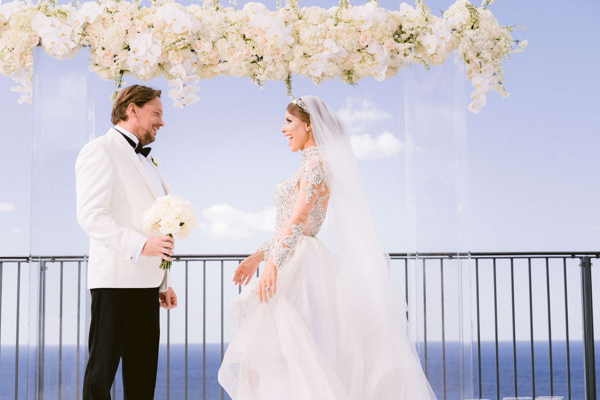 I think this is the definitive Wedding. Shilan and Martin invited a small group of people to their Wedding at the Jumeirah Port Soller Venue, about 25 people to their Wedding. They were very focused on enjoying every moment of their Wedding together. They even had a Photo session at the ceremony area before the ceremony took place. We took advantage of this and created a first look photoshoot, where the Groom Martin, saw Shilan, the Bride in her Bridal Gown for the first time.